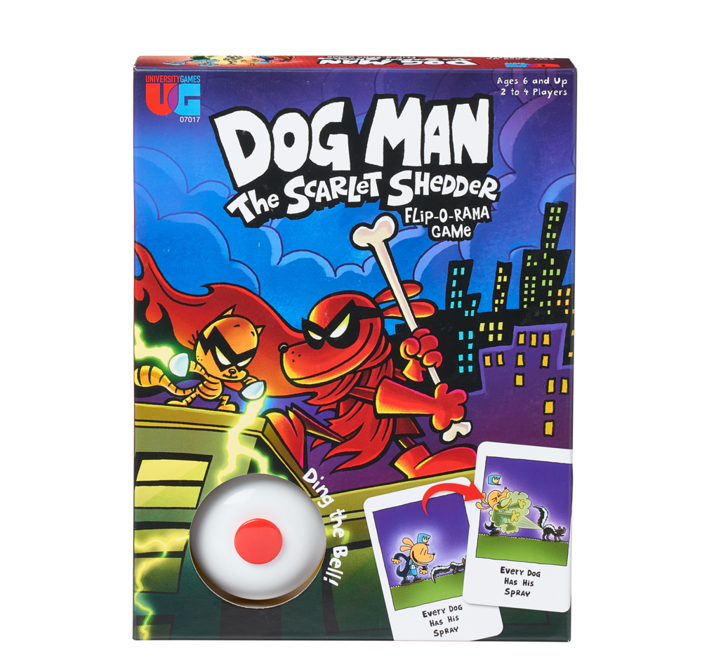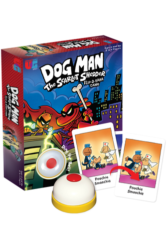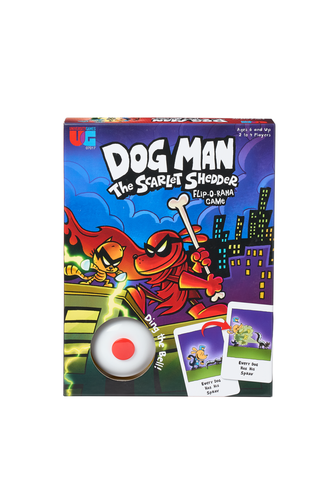 Everyone loves the Flip-o-Ramas from Dav Pilkey's bestselling books! In the Dog Man Scarlet Shedder Flip-o-Rama game, players stack Flip-o-Rama Cards in the middle of the play area and take turns flipping them over. The first player to spot a Flip-o-Rama match dings the Bell. The player to collect the most Flip-o-Rama Cards wins!