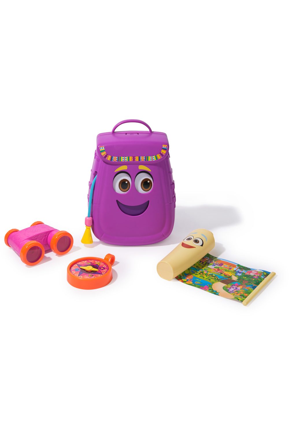 Create fun-filled adventures with Dora's My Adventure Backpack! This exciting preschool toy transports kids into Dora's world. Standing 8 inches tall, Backpack looks just like the Dora's beloved sidekick from the show. Pull the tassel to make Backpack's eyes & mouth move, adding a touch of magic to every journey. The set also includes a retractable map, binoculars, and a compass, for endless pretend play explorations. The double-sided map extends & retracts, for easy access & storage. Backpack also opens and closes, for convenient toy storage, and features adjustable straps for on-the-go play. Step into the world of Dora, with toddler toys that will make magical birthday, Christmas, & holiday gifts for girls & boys that love pretend play toys.