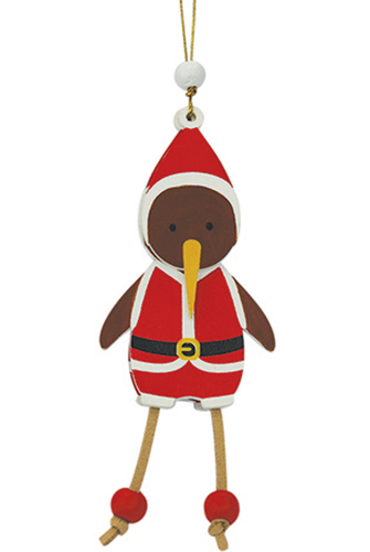 Brighten up your Christmas tree by adding some kiwiana this festive season with a wonderful wooden kiwi decoration dressed as a santa that wobbles about on the tree. The decoration has layered pieces and features a 6cm long string for hanging.