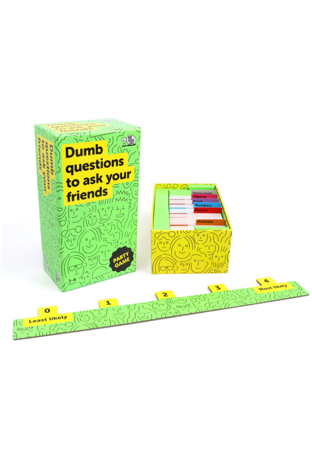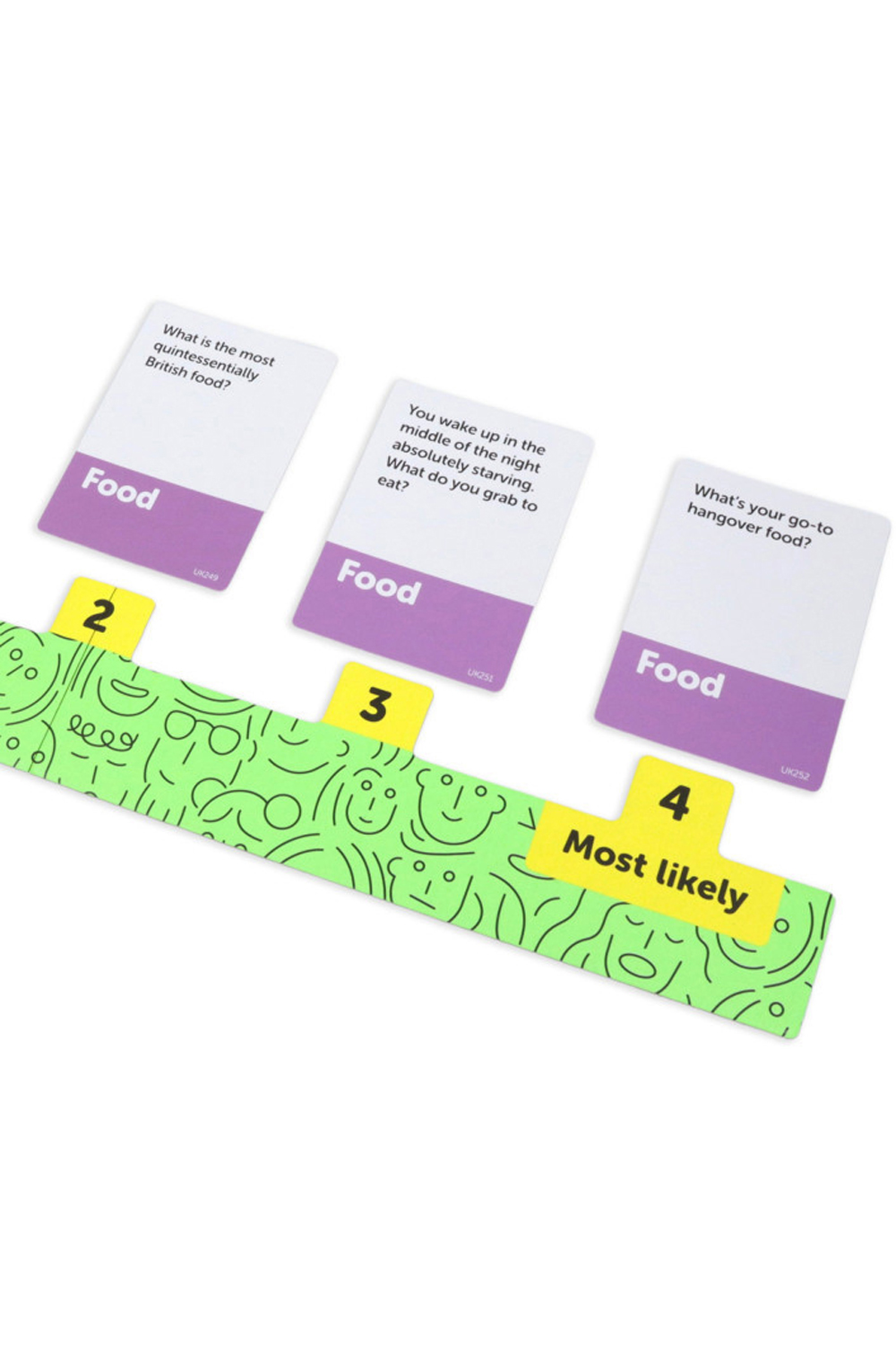 In this hilarious family party game, there are 400 ridiculously dumb questions to answer. All you need to do is guess which question, out of 5 options, your friends just answered. Your friend has answered '7'. Is this how many squares of toilet paper they use when they poop? Or their ideal number of kids? The perfect icebreaker to play in big groups whether they're new or old friends - you're sure to learn something new about the people you play with!
