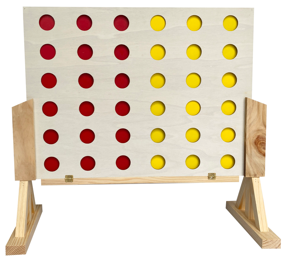 Only available in-store, not available online. Up the ante on your outdoor games with this giant wooden Connect 4 game from Easy Days! This set is made from durable materials so you can enjoy hours of fun on the lawn, patio, or beach. The large size of the game board makes it easy to play, and the red and yellow pieces are sure to catch everyone's eye. Whether you're playing with friends or family, this game is sure to provide hours of competitive fun. Bring the excitement of Giant Connect 4 to your next outdoor gathering with this giant classic game!