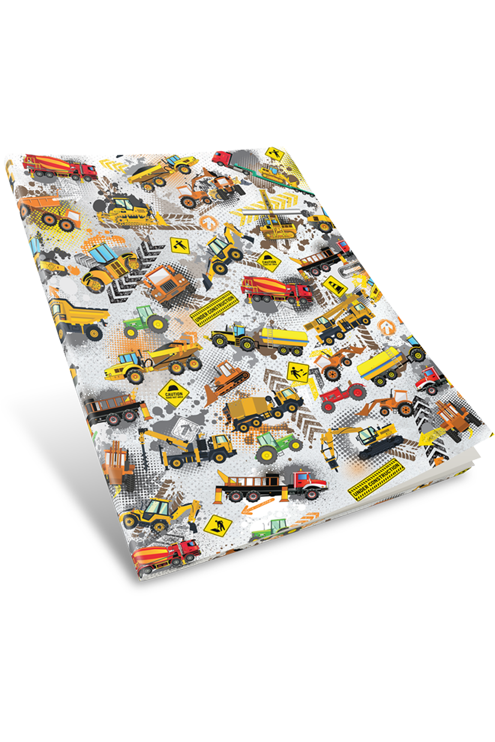 Give your child's school books some life and have them stand out with this fun construction themed EZ Covers slip on cover. If you are a construction site fan, this is the school book cover for you! Just add your own beeps, whirrs, and scooping sounds and bring our Diggers cover to life. EZ Covers are non-toxic and reusable.