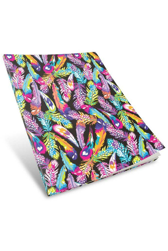 Give your child's school books some life and have them stand out with this fun vibrant feather design EZ Covers slip on cover. Set on a black background, this colourful Feathers pattern is a very popular school book cover. EZ Covers are non-toxic and reusable.