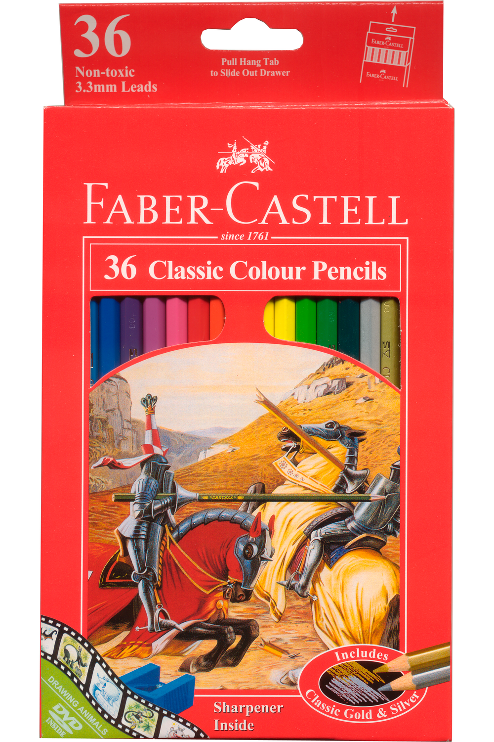 Set of 36 Faber Castell Classic Colour Pencils includes Classic Gold and Classic Silver.