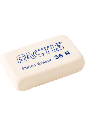 The Factis 36R Eraser is a soft, white, rectangular form  high quality eraser. Made of synthetic rubber, has great adsorption power and can be used for any kind of pencil graduation. This erasers work perfectly on any kind of paper and all surfaces. The 24R and 36R erasers are specially suitable for children and students at school.