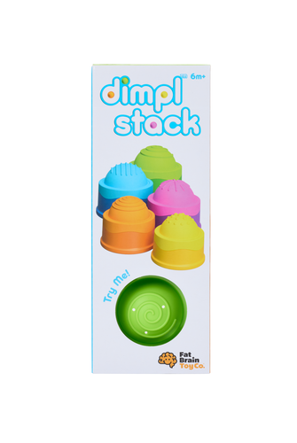 A vibrant stack-and-discover experience! The top of each cup features a squishy silicone bubble embossed with a unique texture pattern. Little fingers will love to touch, push, and pop them again and again. Meanwhile, its unique stackability engages curious and growing minds while providing the hours of fun parents have come to expect from the entire line of Dimpl toys. Tactile fascination stacks up with Dimpl Stack!