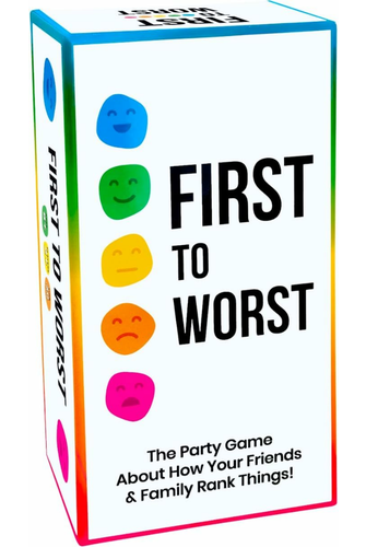 First to Worst is the ultimate multi-generational game of polarizing priorities! In this fun collaborative game, players try to get into each others' heads by guessing how fellow players rank a wide variety of interesting topics. Pineapple on Pizza? Country Music? Cat Videos? There are almost 300 topics in the game! The Ranker secretly ranks five random things from 1 to 5. Then, as a team, the rest of the players now try to guess the exact order chosen by The Ranker. Get more right than wrong to WIN the game!- Ages 8+