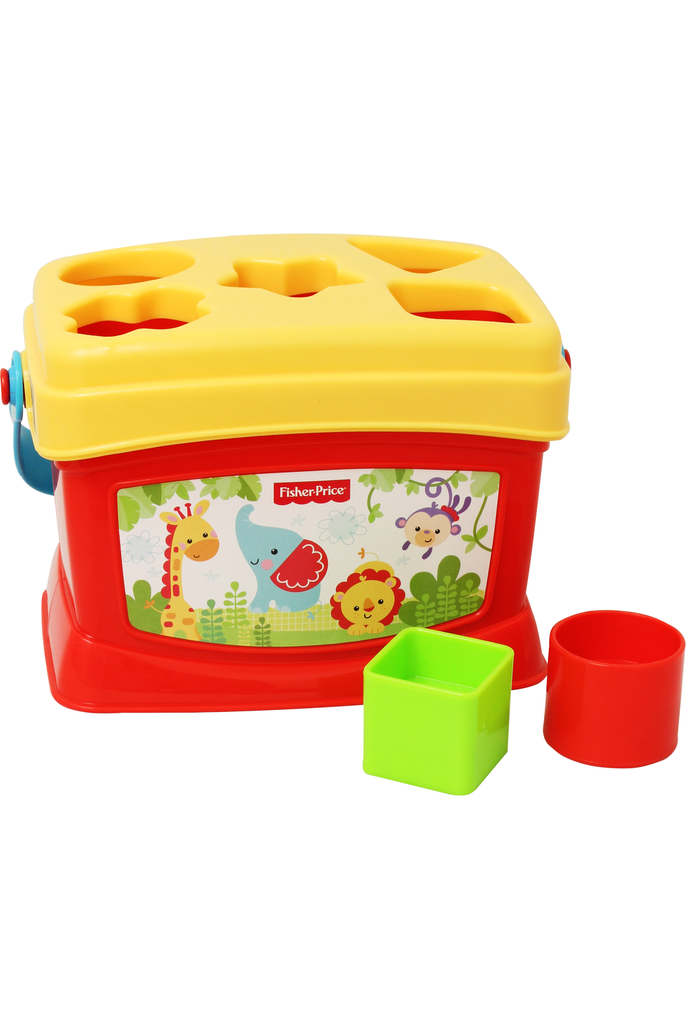Ten bright blocks are ready to introduce baby to shape-sorting fun! Your baby can drop blocks into the open bucket or through the shape-sorting lid! Filling the bucket with blocks, dumping them out, and starting over is great for eye-hand coordination and other early skills. Then baby can move on to sorting and stacking, learning about identifying and matching shapes while having fun! All ten blocks fit inside the bucket which also features a carry-handle for easy take-along.