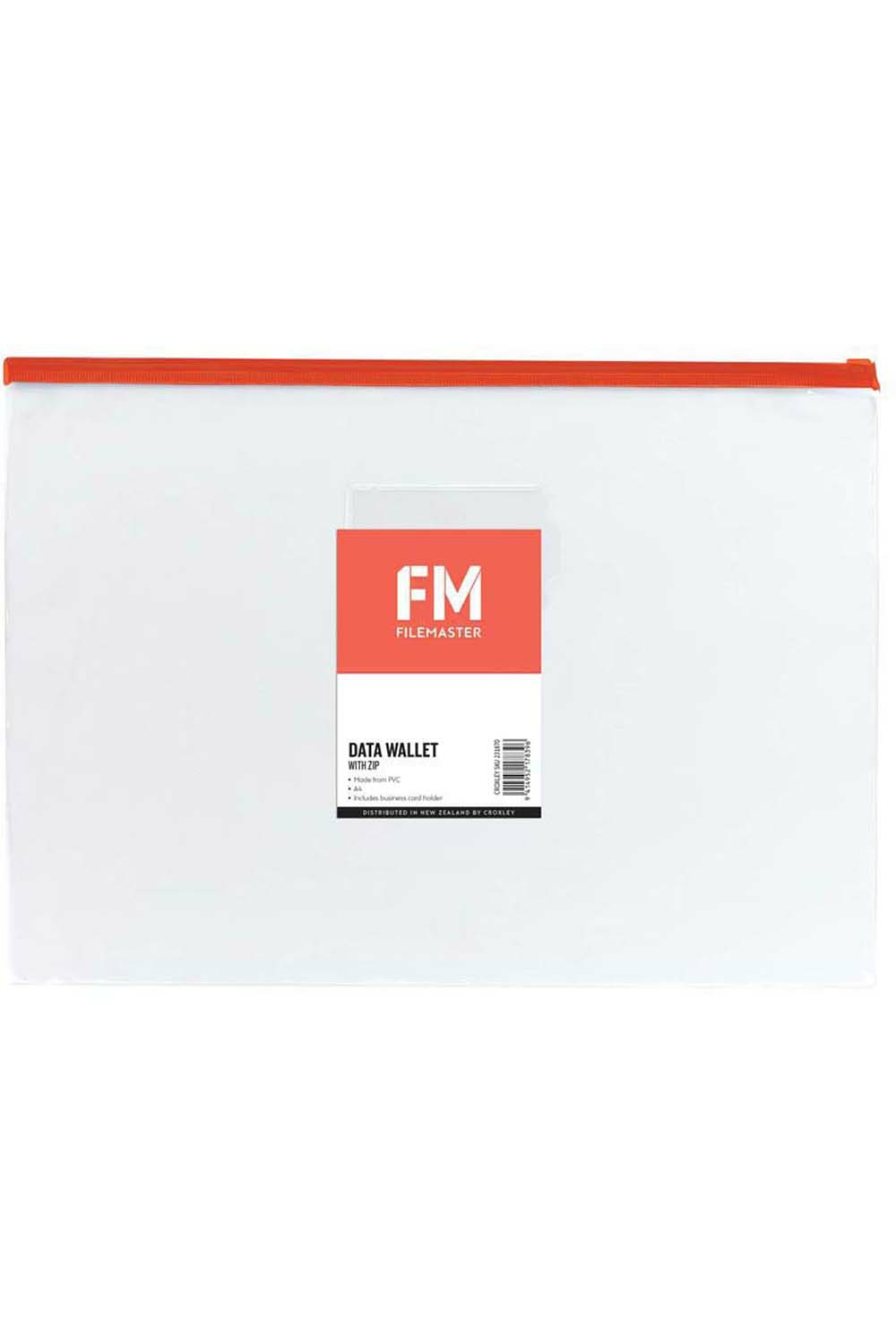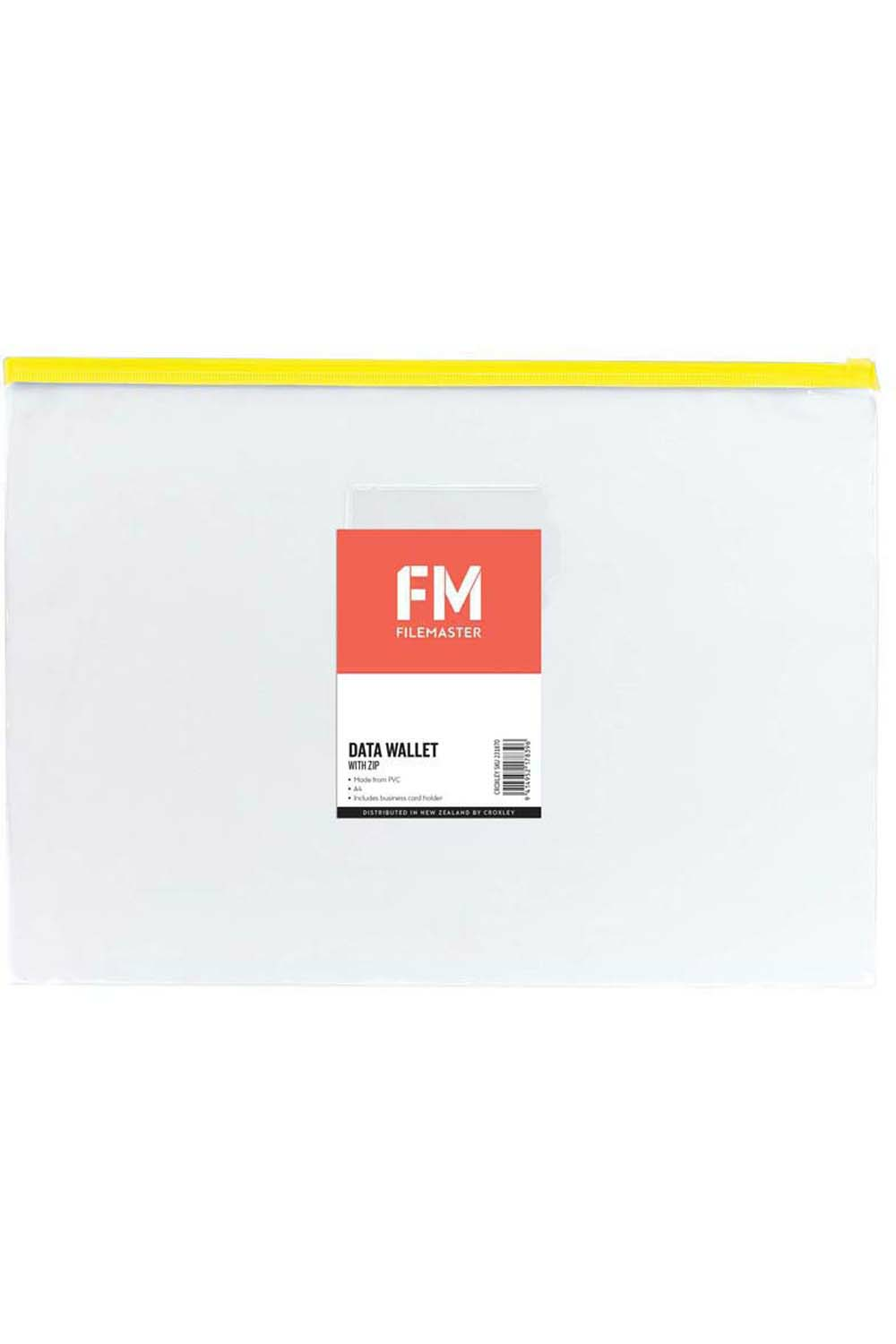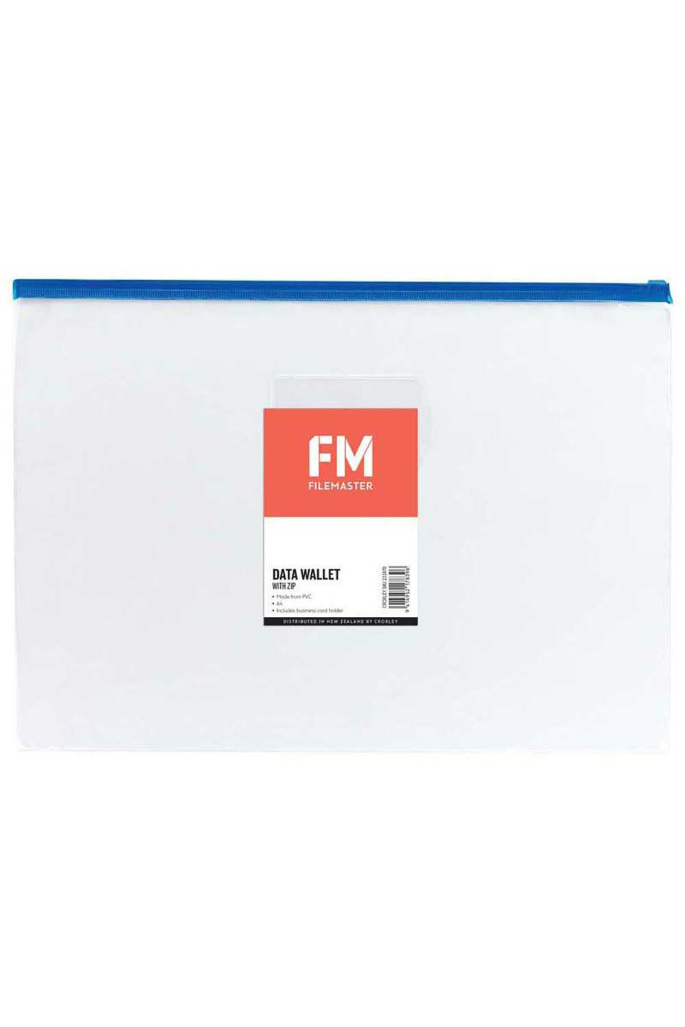 This File Master A4 data wallet with zip is ideal for storing papers, notes and loose objects. The zip ensures that nothing is lost from the wallet once closed. Made from PVC. Includes a business card or name pocket on the font. Wallet is clear but comes in assorted zip colours (red, blue, yellow or green). Please note this is an assorted item, you will receive a randomly selected design/colour for online orders.