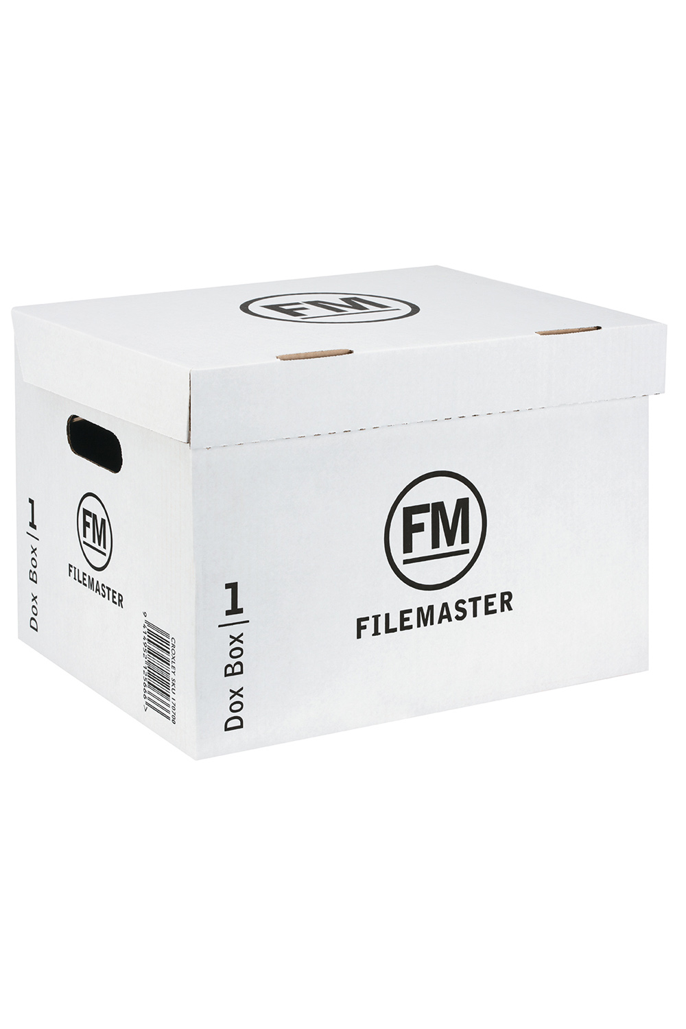 This This File Master archive storage box file is designed to hold 4-5 A4 lever arch files or 3-4 foolscap sized storage cartons. Can also store suspension files. It has triple strength side walls and a solid base that provides secure stacking up to 10 high. Box has a hinged lid and is white on outside with date and contents sections available on the top and sides of the box. Maximum 16kg load.