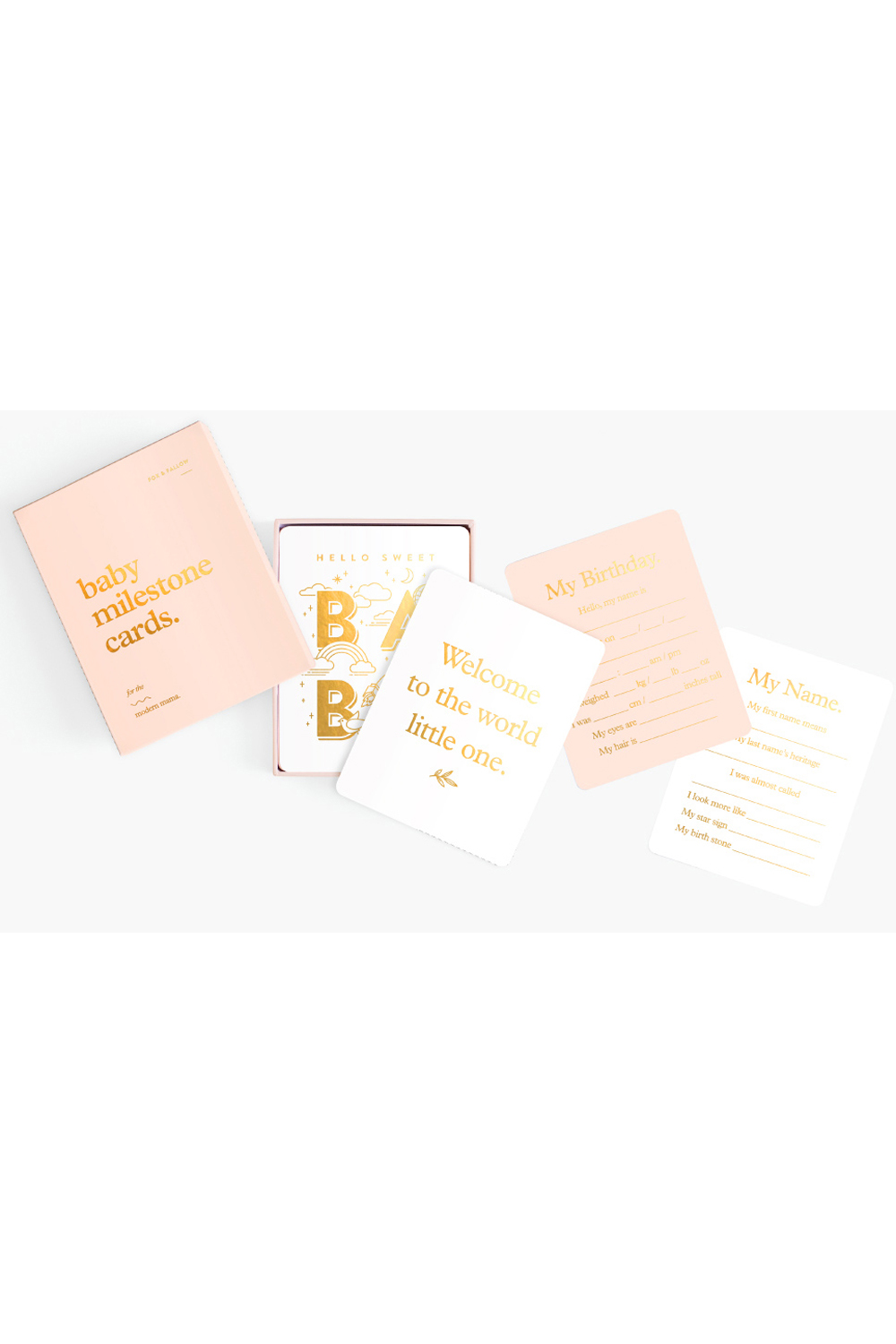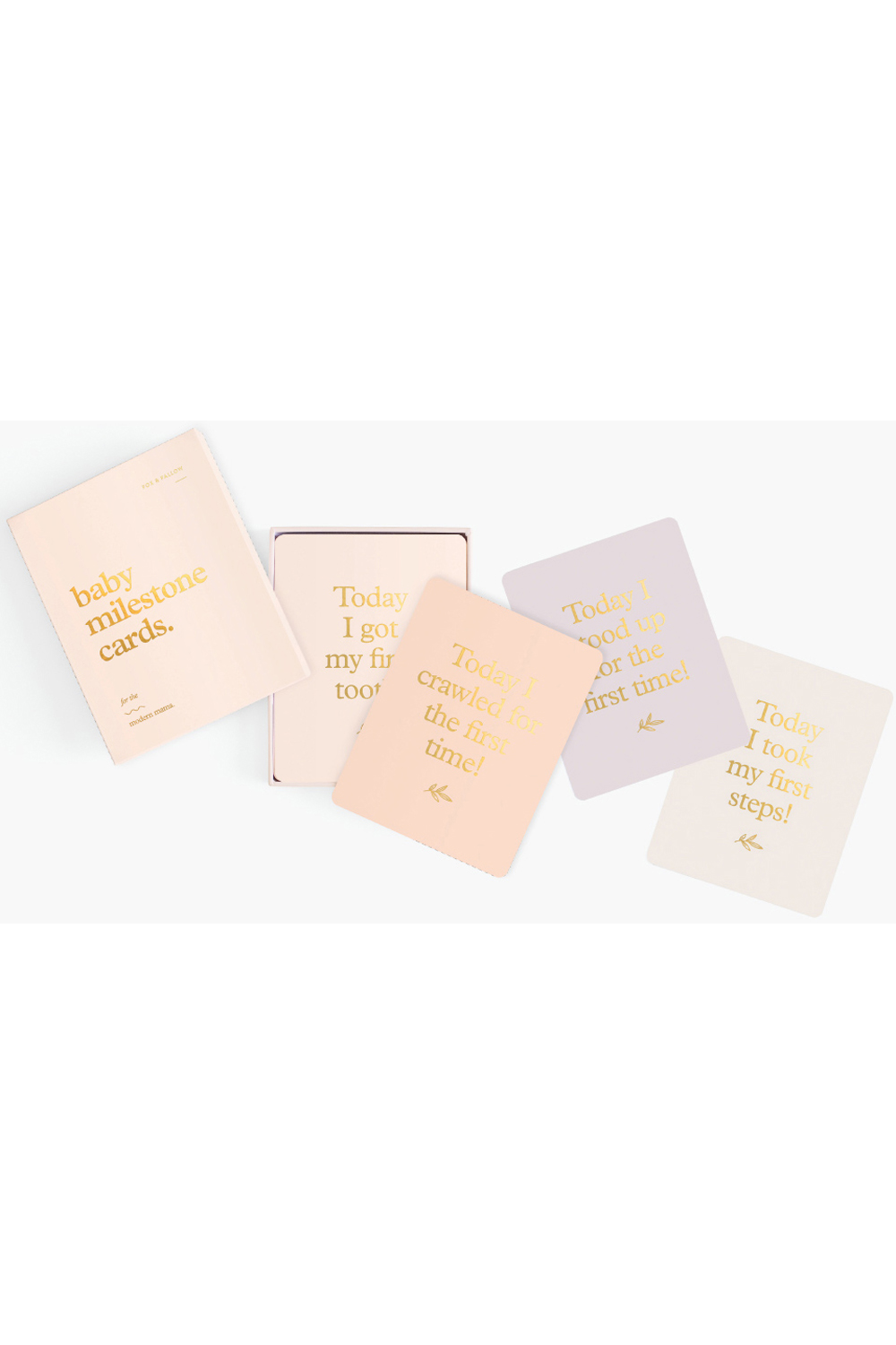 This box of 34 baby milestone cards from Fox & Fallow is a beautiful keepsake and a great way to record each treasured moment in one elegant place. It features 34 cards with rounded corners all in gender neutral colours with gold foil on every card; packaged in a beautiful keepsake rigid box with gold foil accents and velvet finish. The cards feature a special card for your birth announcement, plus all the important milestones from one day old to one year old.