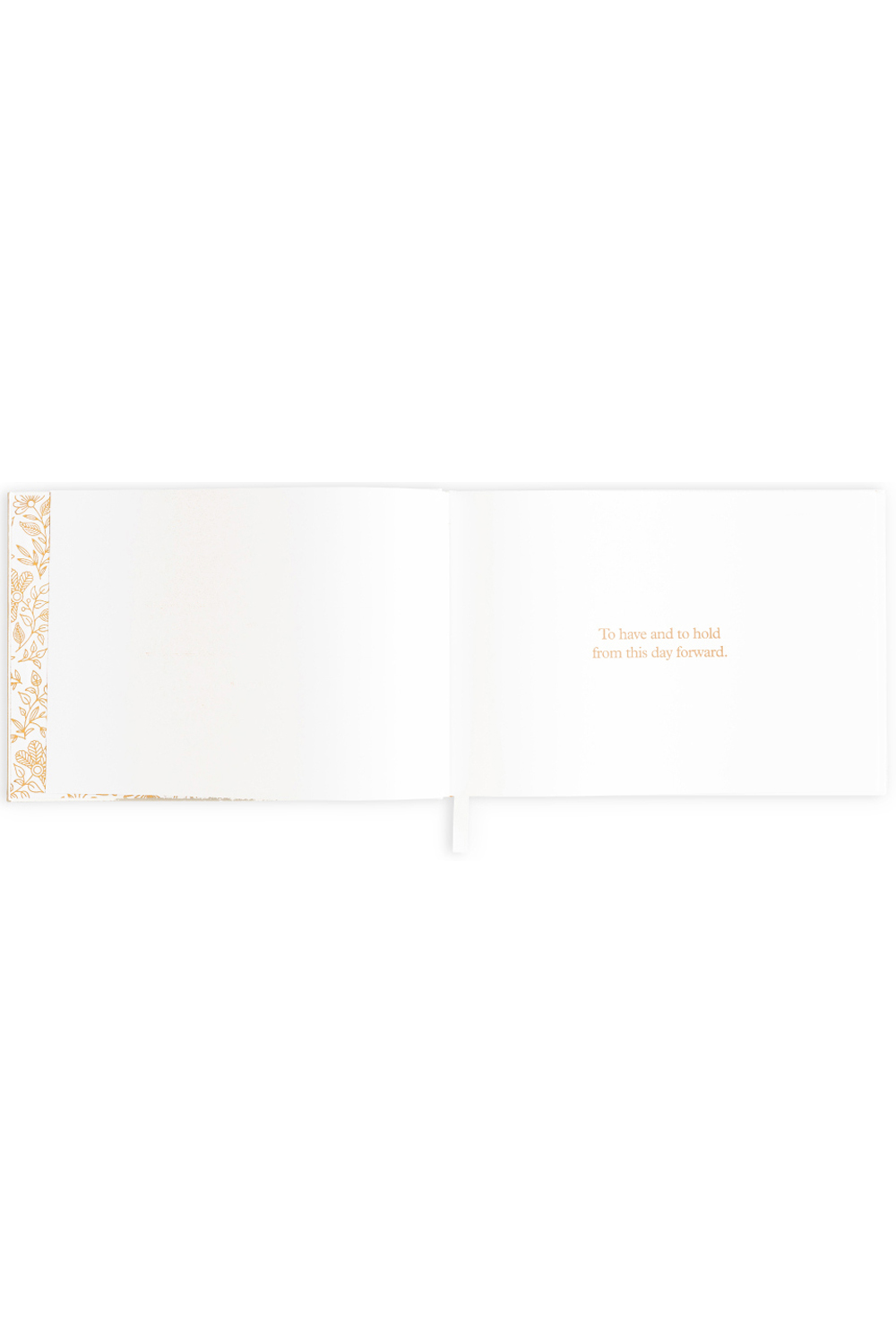 This wedding guest book from Fox & Fallow is a beautiful keepsake and a elegant way for your guests to leave words of love on your special day. It features a cream linen hard cover with a beautiful design and the words 'To Have + To Hold' stamped with gold foil. With approximately 160 blank pages that are adorned with a metallic gold border, your nearest and dearest will have plenty of room to leave you well wishes and words of wisdom.