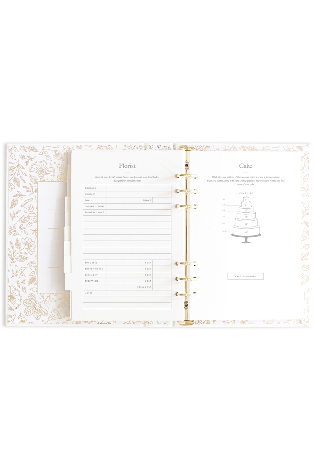 This ultimate wedding planner from Fox & Fallow is a beautiful, functional, and long-lasting way to keep your wedding organised in one elegant place. It features a cream linen hard cover with a beautiful design with the words 'You + Me' stamped with gold foil. This planner includes: a wedding day timeline with monthly, weekly, and daily planner; engagement party, bachelor and bachelorette party, and honeymoon planning; helpful budget breakdowns; wedding day run sheet and checklist; in depth guide to florals, stationery, attire, beauty, and more.