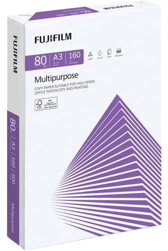 FUJIFILM Multipurpose Copy Paper is suitable for high speed office photocopying and printing and ideal for office and home use. Paper is 80gsm and 100% Elemental Chlorine free (ECF) as well as FSC certified.