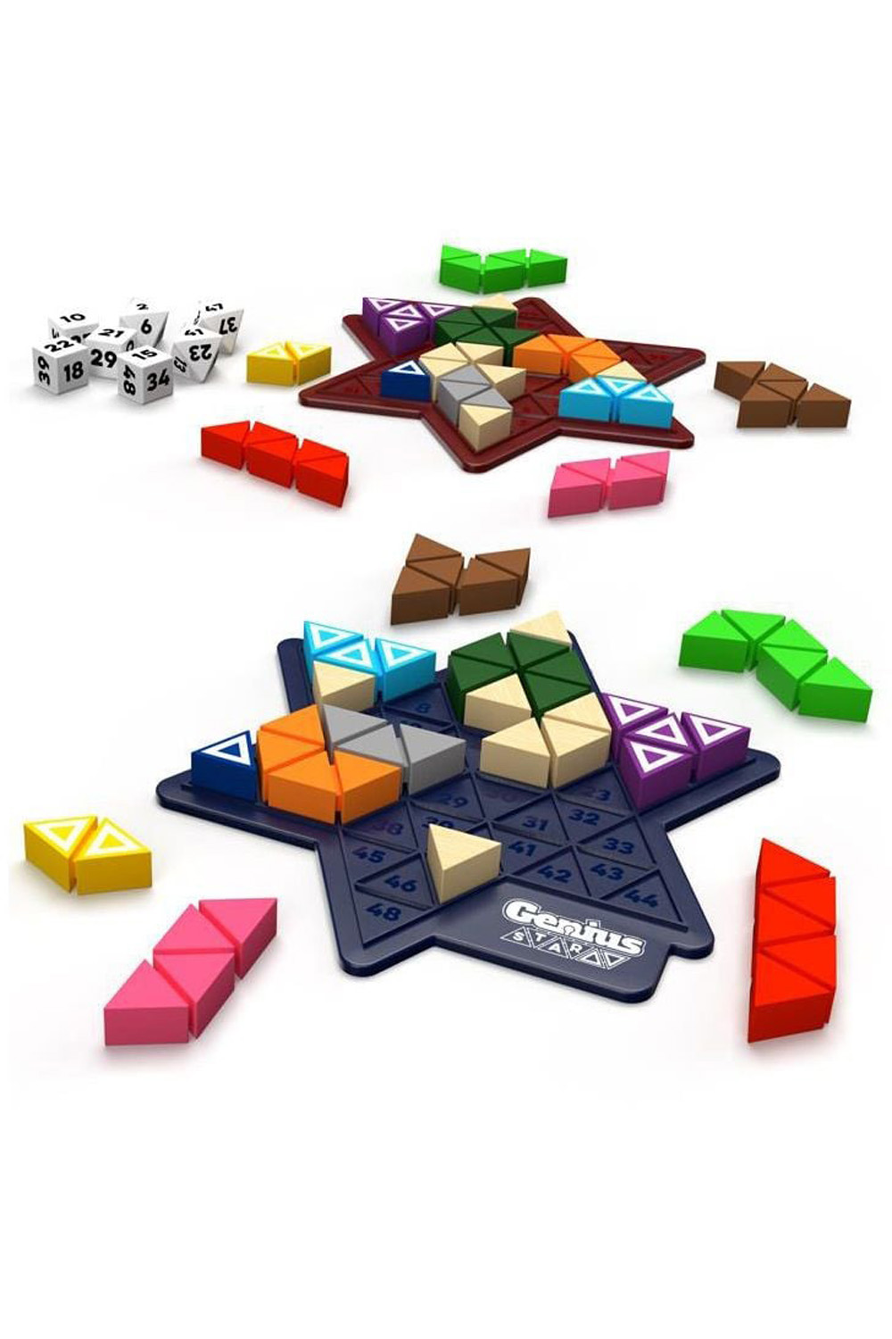 Race and become the star of the game! Think fast to solve the challenges before your competitor reaches the highest level. Roll the dice, place the 7 blockers on the game board accordingly and complete the star using the 11 puzzle pieces before your competitor. Finished first? Start the next game in a higher level and leave your competitor lagging! Be the first to solve all 5 levels. Includes more than 160,000 puzzles divided over 5 difficulty levels, all having at least 1 possible solution. Test your speed and ingenuity with this unique and fun game for 1 or 2 players. Discover this more challenging variant of Genius Square.