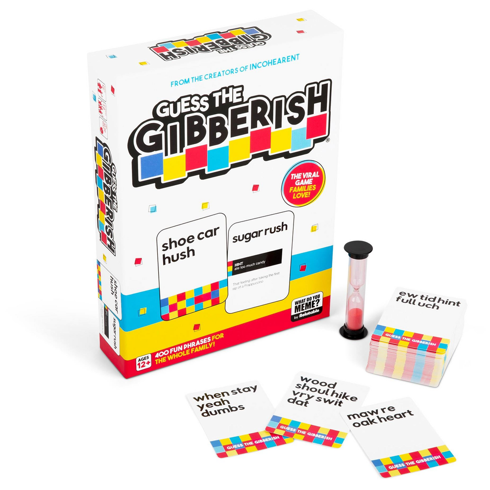 Bring the viral fun home with Guess The Gibberish - the laugh-out-loud party game that has players racing to decode gibberish into real phrases. Perfect for ages 12 and up, players take turns flipping a card and reading the scrambled phrase out loud while the rest of the group races against the clock to guess what it really means. Simple to learn and endlessly entertaining, it's a fast-paced game that guarantees giggles, silly moments, and lots of "aha!" victories. Keep kids entertained all winter break with a game that's equal parts silly and engaging.
