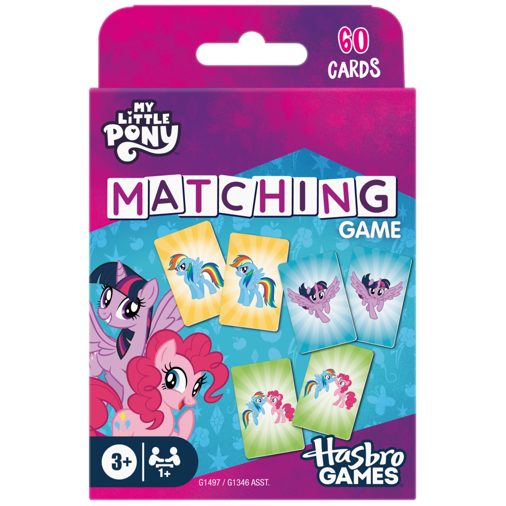 Little ones can practice memory skills by flipping and matching cards featuring characters from the Peppa Pig, Transformaers, or My Little Pony series. These preschool games for kids ages 3 and up includes 60 dazzling picture cards and instructions. When all the cards have been matched up, each player counts the cards in their score pile. The one with the most cards wins! Whether you're looking for preschool games or travel games for kids, this Matching Game is a great choice.