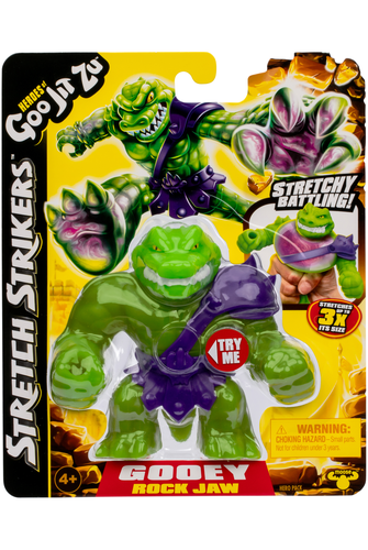 Introducing the EPIC Heroes of Goo Jit Zu Stretch Strikers Hero Packs! Fan-favourite characters return, ready to take on menacing Goo Jit Zu villains! They are equipped with the ability to stretch up to three times their size, so be sure to unleash an EPIC Stretch Attack! Additionally the Heroes have unique fillings! Squeeze and stretch his body to discover it! The stage is set; collect all 5 Heroes of Goo Jit Zu Stretch Strikers for an EPIC stretchy clash between good and evil!