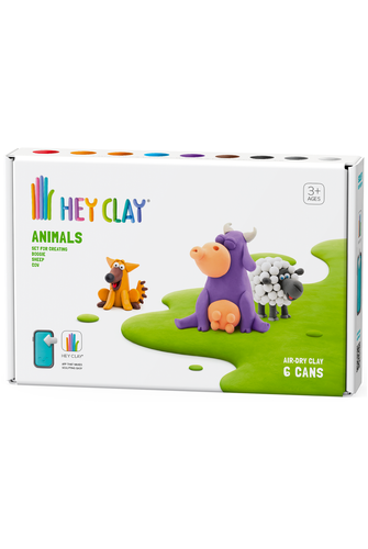 The kids are guaranteed to sculpt an attractive character! With this set consisting of 6 pots of modeling clay from Hey Clay, you can use the accompanying app to model three cheerful farm animals: a cow, a dog and a sheep. Modeling has never been so fun and easy! Follow the simple instructions via the animations on the app to make the characters come to life. The app shows step by step which colours are needed and how to sculpt the individual parts. You can create all the characters in the set using the colours on the packaging. Some of the clay remains for reuse and should be stored in a closed box to prevent it from drying out. Hey Clay is non-toxic self-hardening modeling clay that is easy to mold and does not stick to hands. The soft clay dries within 20 minutes and hardens after 24 hours, so you can play with the created characters immediately. So children don't have to wait impatiently. Hey Clay is a creative toy that promotes imagination, fine motor skills and creativity.- Ages 3+