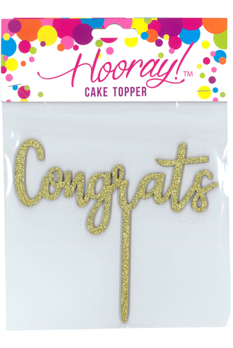 Top off a cake and someone's special event with this stunning glittery gold Congrats cake topper. Perfect for events, this cake topper will truly light up someone's day.