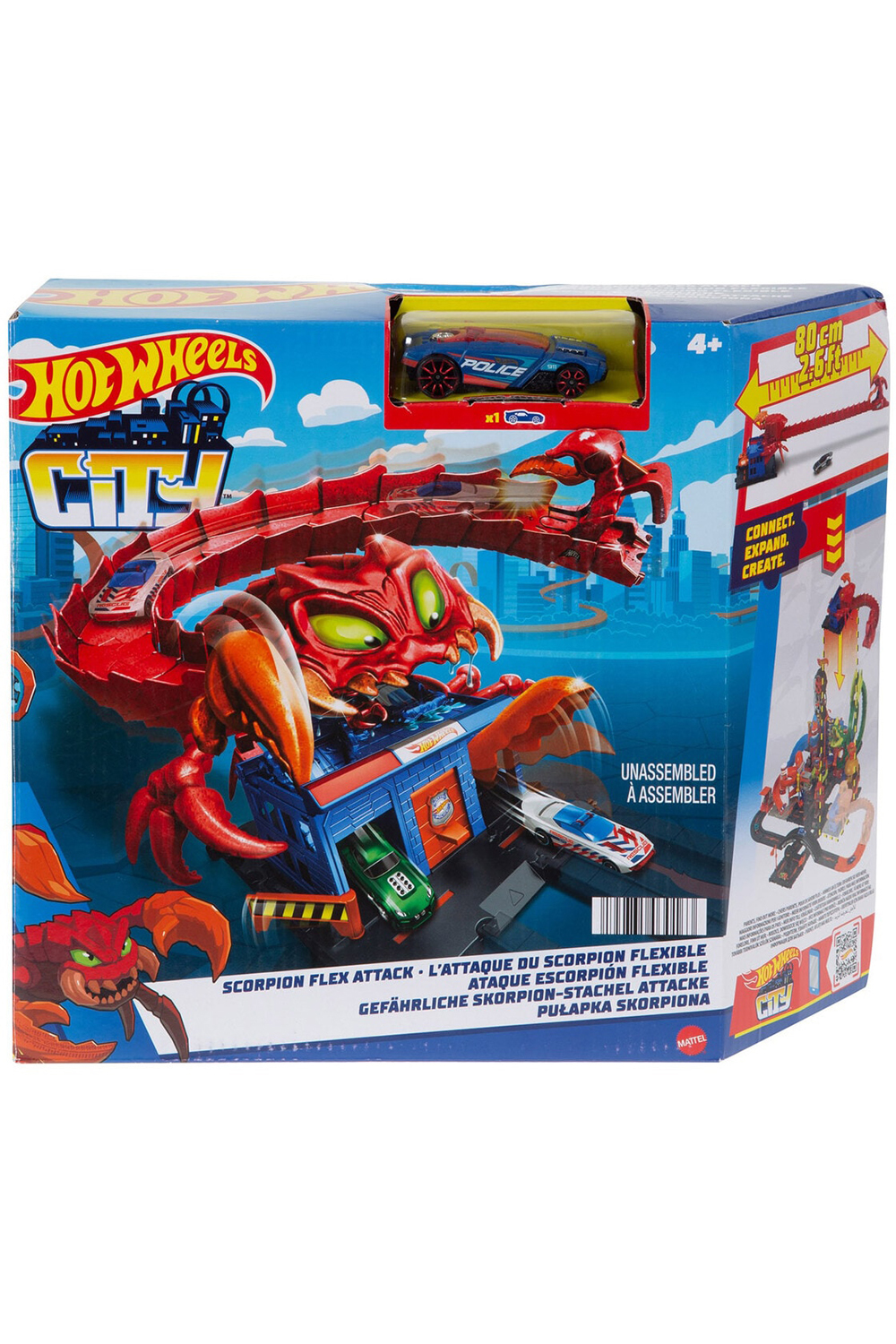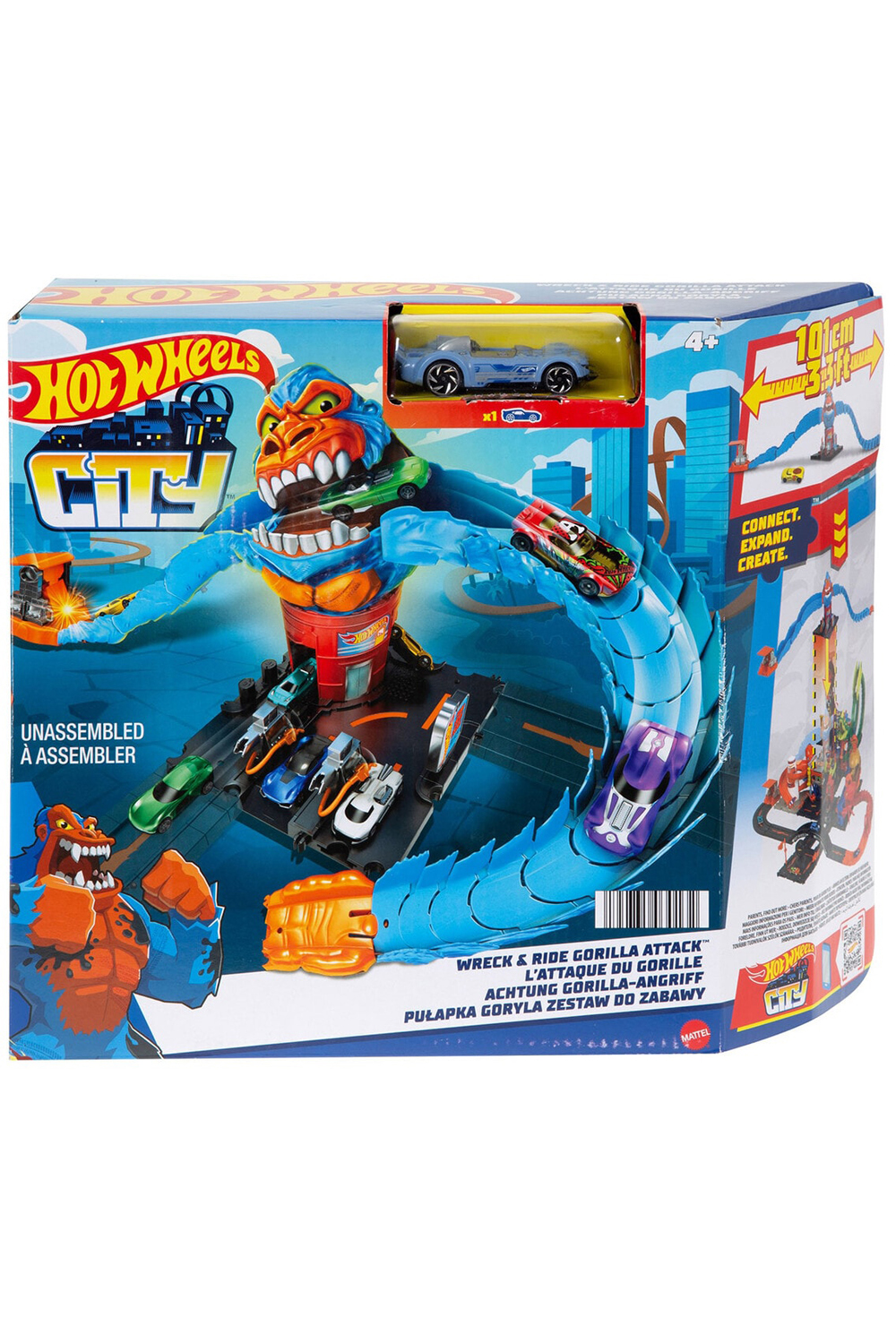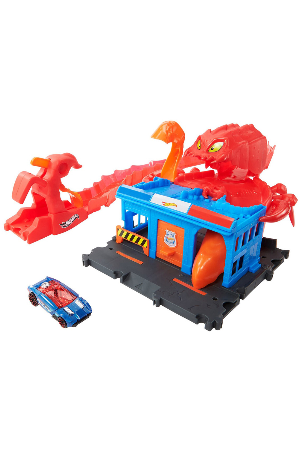 Fierce creatures have invaded familiar landmarks in Hot Wheels City creating exciting obstacles and epic adventures for kids to experience with their Hot Wheels vehicles. These sets connect to each other and to other sets so that kids can build out their own unique cityscape full of challenges and nemesis obstacles that inspire creative storytelling through push-around play they'll want to collect them all (each sold separately). Includes one Hot Wheels car making it a great gift for any occasion. Colours and decorations may vary.