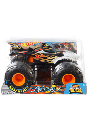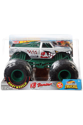 Built to smash and crash everything in sight, the Hot Wheels Monster Trucks 1:24 are the baddest trucks ever built for competition and ultimate dominance! Squaring off in head-to-head battles with their giant wheels, every truck includes a collectible wheel and stats for each truck including name, truck type, strength, and more!