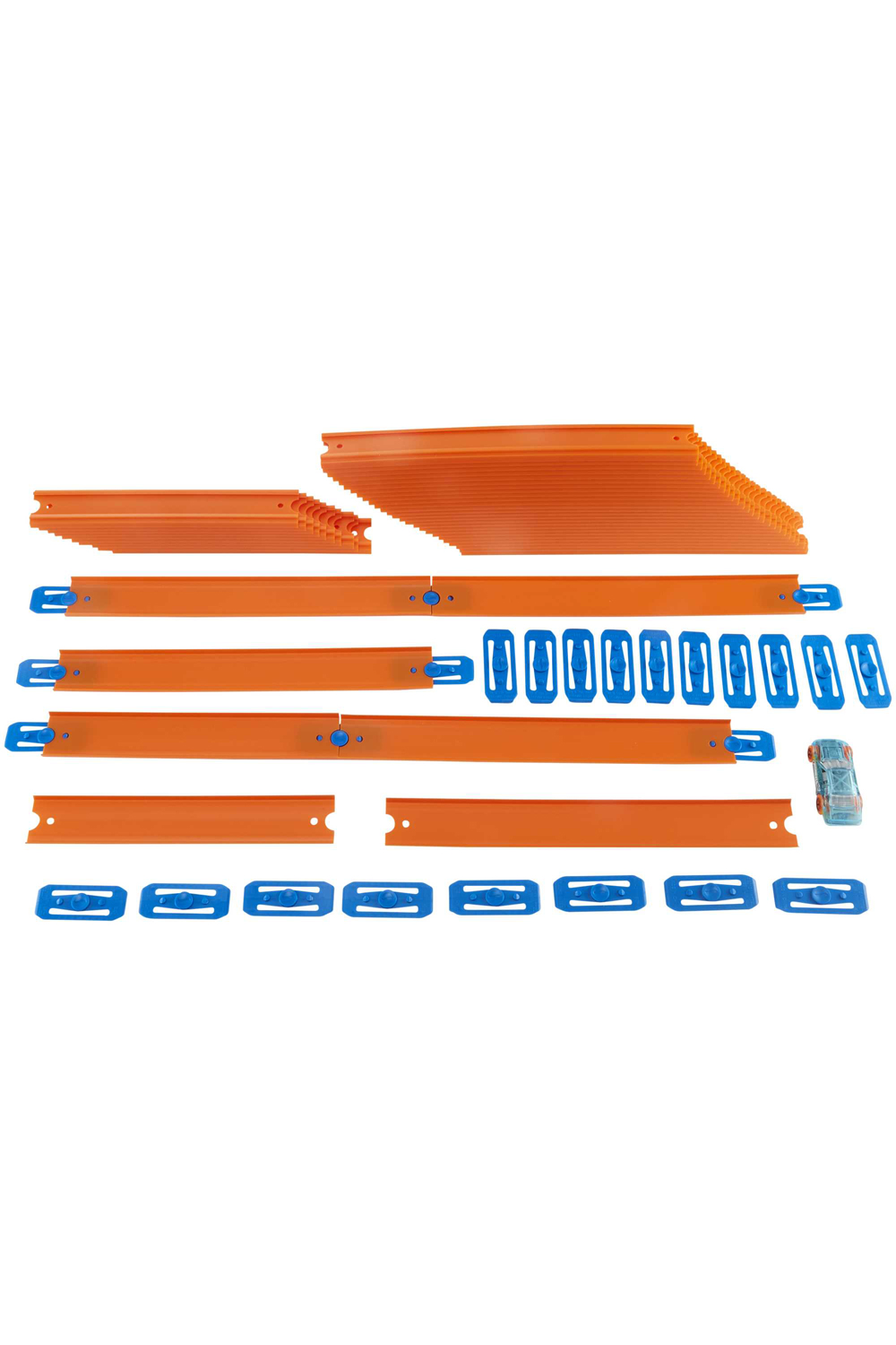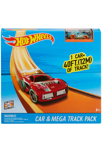 Mega Track Pack includes a whopping 40-feet of track, multiplying the customizing action to the max! Inspire kids to embrace challenge and rev creativity by building their own epic Track Builder world and customizing it with the perfect accessories. The Track Builder Mega Track Pack includes a Hot Wheels car for fuelling fun right out of the box. Includes 43 easy connection connectors, and 40-feet of straight track with two different lengths! Send cars blasting along the track and speeding through the straightaways. Ignite competition and see which car has what it takes to win! Connects to other sets in the Track Builder system (sold separately) to create stunts, race with friends, and enhance customization.