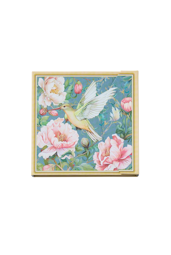 A notepad set featuring beautiful images of hummingbirds and vibrant florals on a magnetic hard cover. The set includes two notepads with tear-off ruled pages printed with floral designs, and measure 8.4cm x 8.5cm.