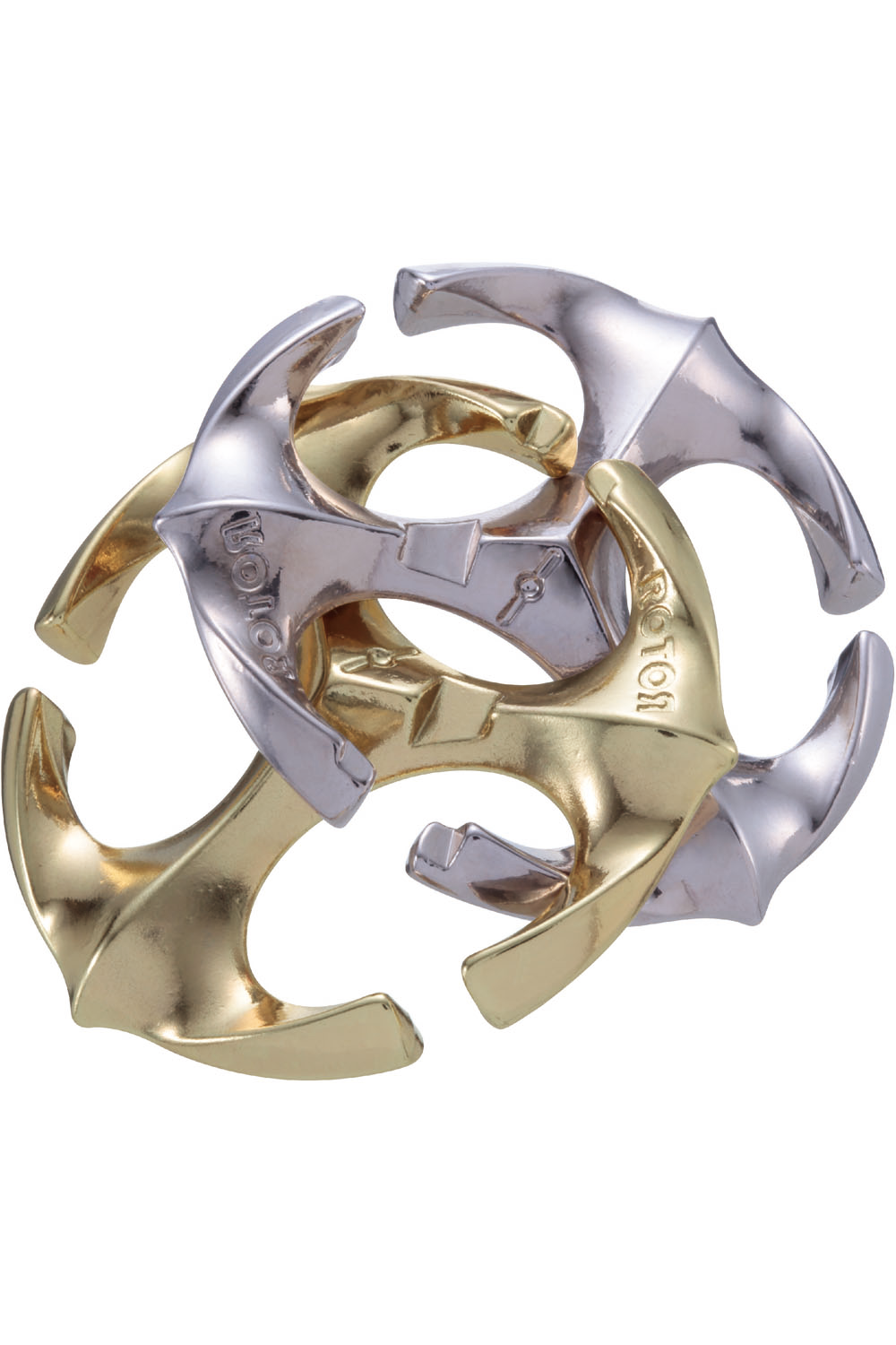 Hanayama Huzzle puzzles, provides puzzles for adults which are solved using a blend of inspiration and logic. The challenge is to take the puzzle apart and put it back together. Rotor is a puzzle made by prominent Hanayama puzzle maker Kyoo Wong. The stylish design of the interlocking pieces of the same shape, are reminiscent of an emblem. The uniquely shaped pieces, along with numerous solutions, make this a difficult puzzle.