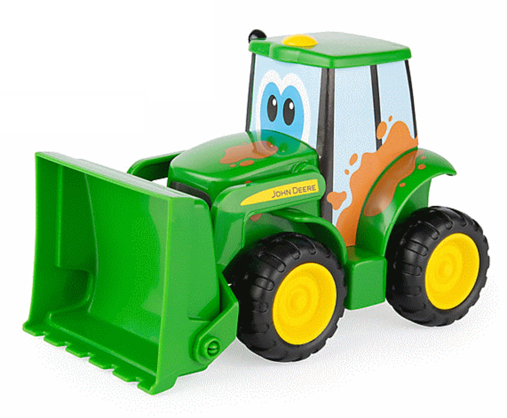 John Deere Farmin' Friends are great first toys for the little farmer in your life. They are designed with toddlers in mind and have fun features for early learners to discover. Choose between the tractor with a working scoop or the dump truck with a tilting bed. Both vehicles feature special muddy design details that are sure to delight young farm fans. Each of these toy vehicles also has free rolling wheels for plenty of push along fun.
