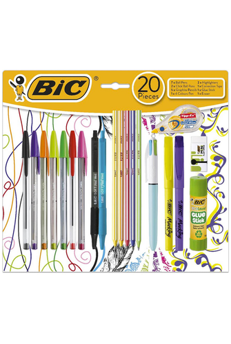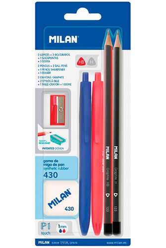 - Contents: 1 notepad, 8 fibre tip pens, 8 coloured pencils, pencil, pen, eraser, ruler, sharpener