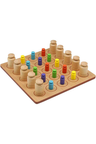 Kloak, the under cover strategy game is the gorgeous, all-wooden game you'll keep on your coffee table even after you're done playing! Kloak small pieces with big pieces but remember where they are! Arrange and un-kloak three of the same colour pieces in a row and score! Be first to score two sets of the same colour small pieces and win! Kloak will keep you guessing (and gaming) with friends and family. Kloak, the under cover strategy game!