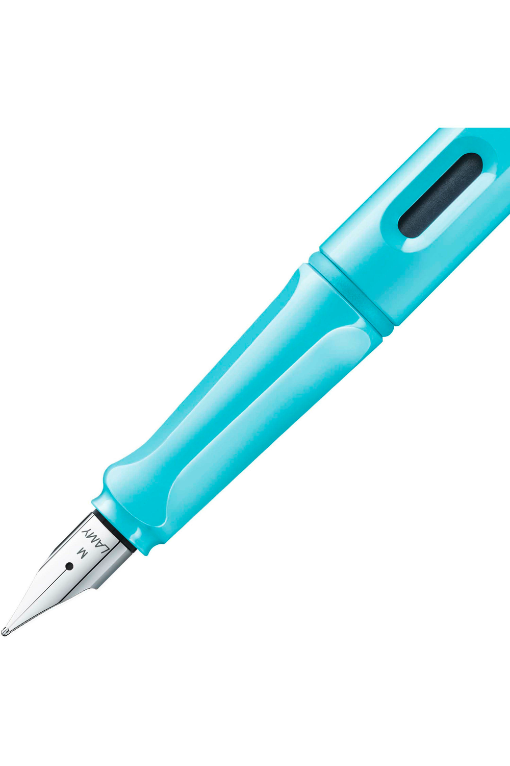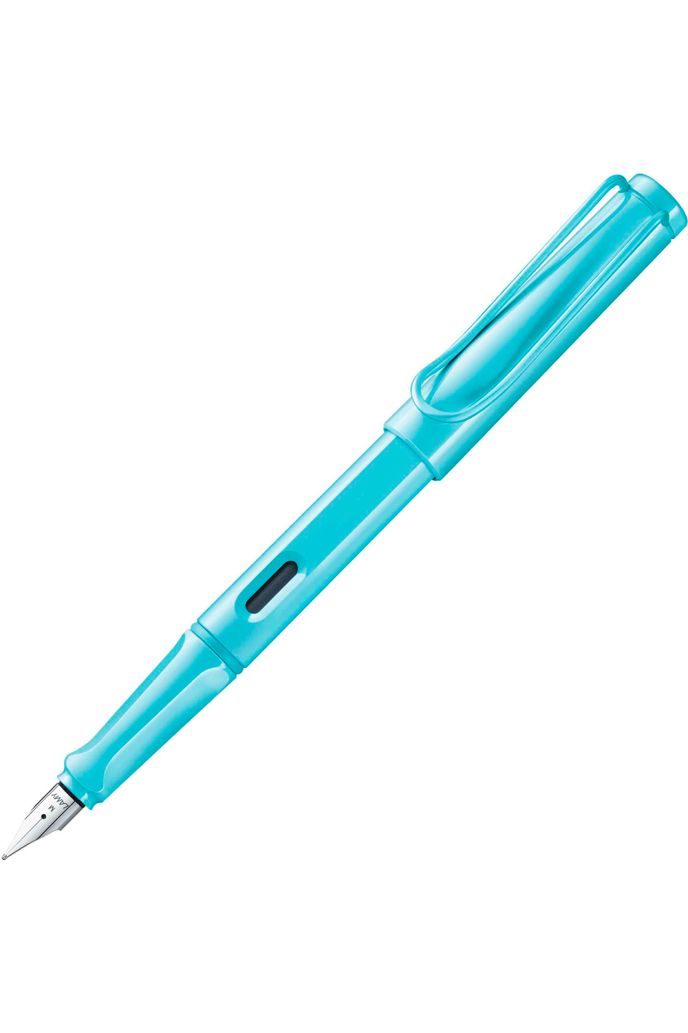 The classic safari design fountain pen in a special edition pastel blue gloss, this fountain pen comes with: a polished steel nib, tough ABS plastic, triangular grip area, ink level window, strong chrome-plated brass pocket clip, and a blue Lamy T10 ink cartridge so you can get started writing right away. If you'd like to use bottled fountain pen ink, you can also purchase a LAMY Z28