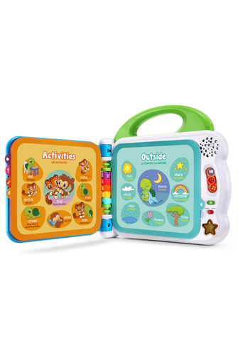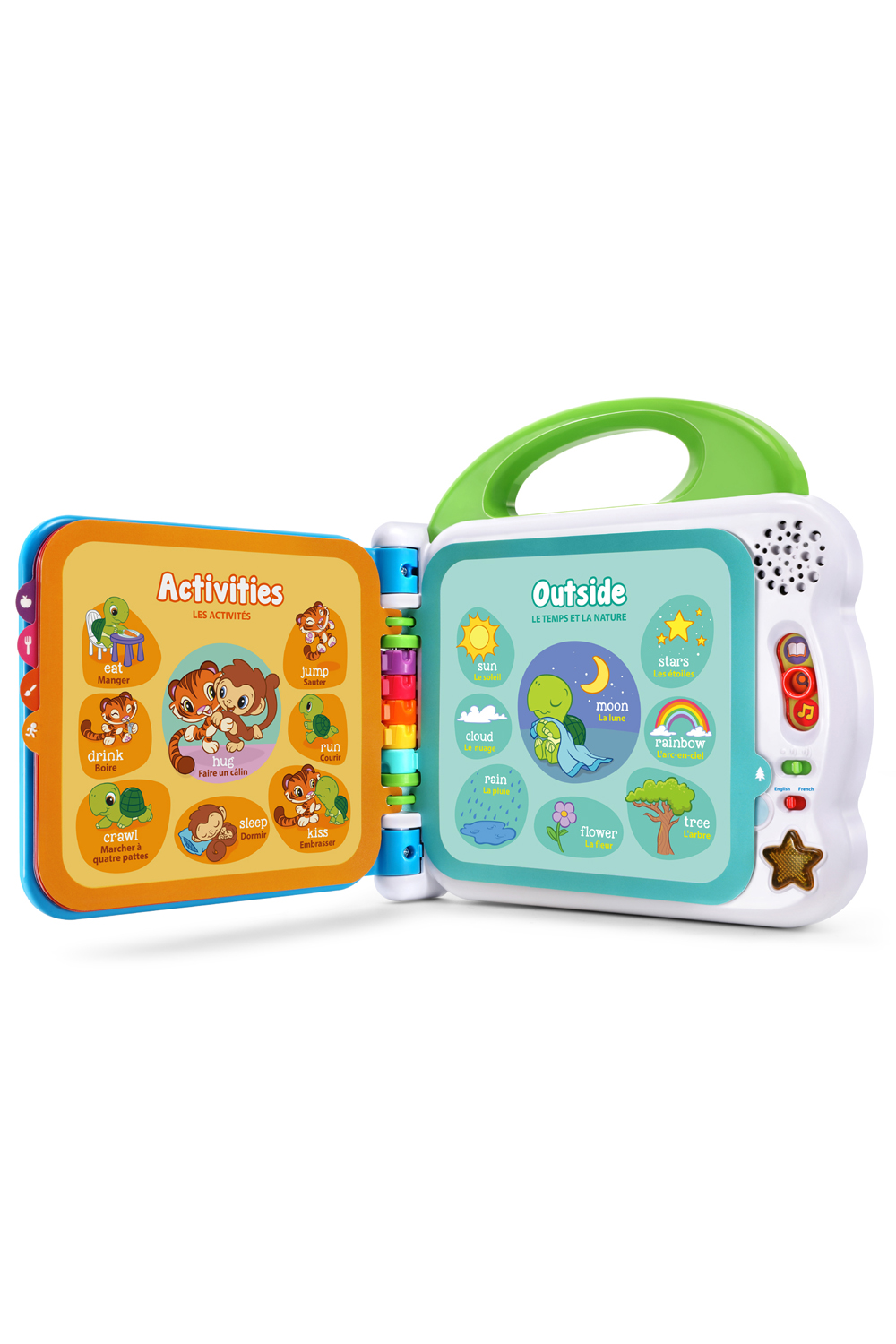 Learn 100 words in both English and French with this amazing learning book from LeapFrog! Explore 3 different modes of play - words, fun facts and sounds. Slide the language switch between English and French to hear all the content in either language. Includes 12 pages of content featuring fun pictures, music and engaging sounds. Each page features a different category, including colours, animals, vehicles, clothing, food and more. Touch any object on the page to learn about it.