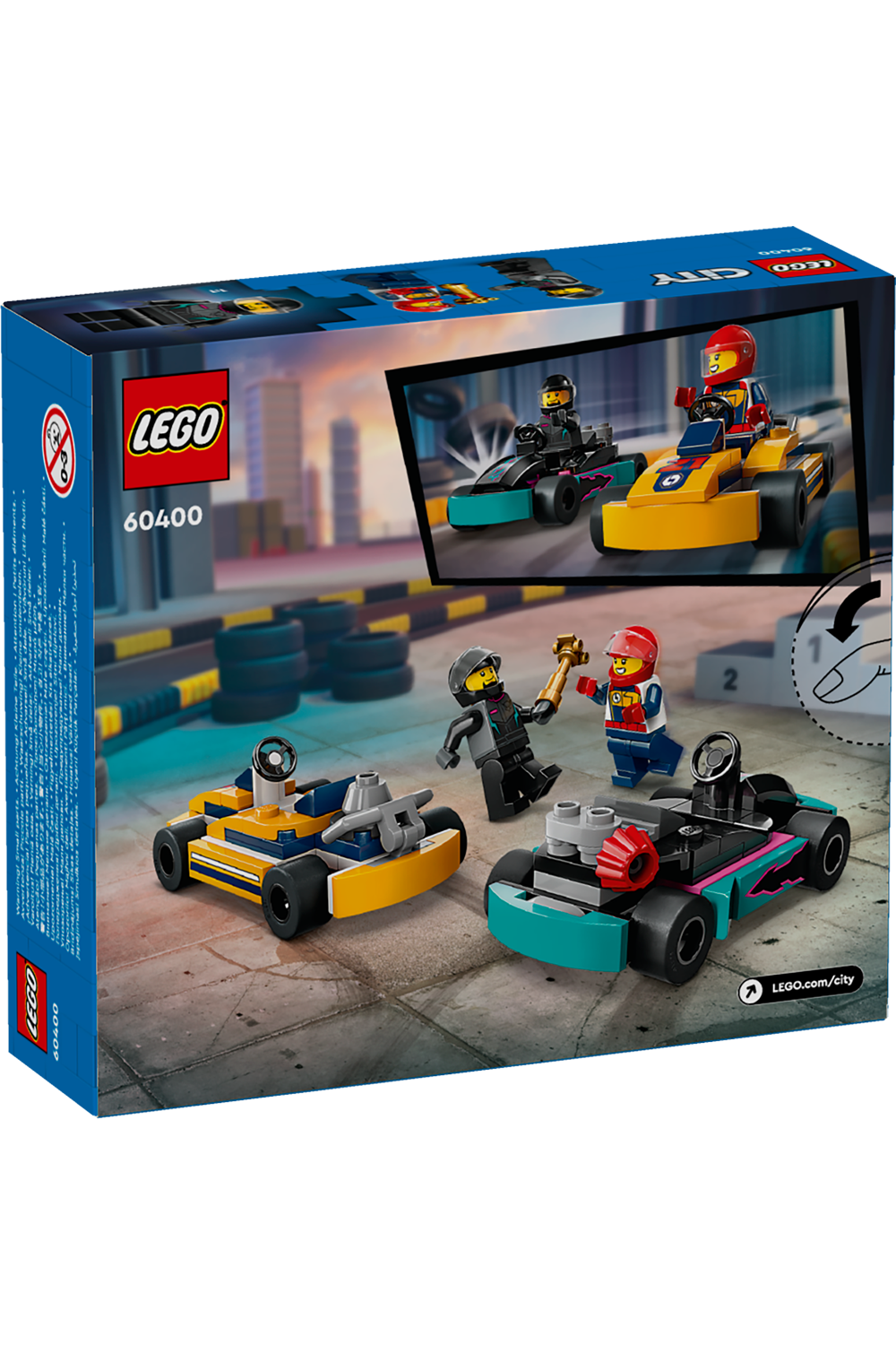 Fans of race car toys can enjoy endless action with this LEGO City Go-Karts and Race Drivers 60400 toy vehicle playset for kids. Little racers can choose between 2 driver minifigures before playing out exciting competitions with the orange and turquoise mini go-karts. This toy go-kart racing set makes a fun gift for kids and includes an easy-to-follow printed building guide, with digital instructions available in the LEGO Builder app. Using this intuitive building companion, kids can zoom in and rotate sets in 3D to visualize models from all angles as they build. The app also lets them track their progress and explore and save virtual playsets. Children grow up surrounded by amazing vehicles and machines and with LEGO City building sets they explore them up close with realistic models and fun characters that inspire open-ended, imaginative play without limits.