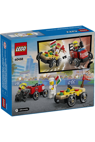This fun LEGO City set features 2 soapbox race car toys and 2 minifigures. Kids can pit the chef in the sizzling pizza slice against the firefighter in the red-hot fire truck toy. Who'll win? Take your seat for epic urban race action! This LEGO race car toy set includes a step-by-step printed construction guide. Kids can also enjoy a fun building adventure with the LEGO Builder app, where they can zoom in, rotate the models in 3D, track their progress as they build, and explore and save other playsets. LEGO City playsets feature cool vehicles, realistic structures and fun characters that inspire play without limits. This soapbox car toy set makes a fun birthday gift for boys and girls aged 5 and up, plus kids can add it to other sets (sold separately) from the LEGO City range to expand their world of play possibilities.