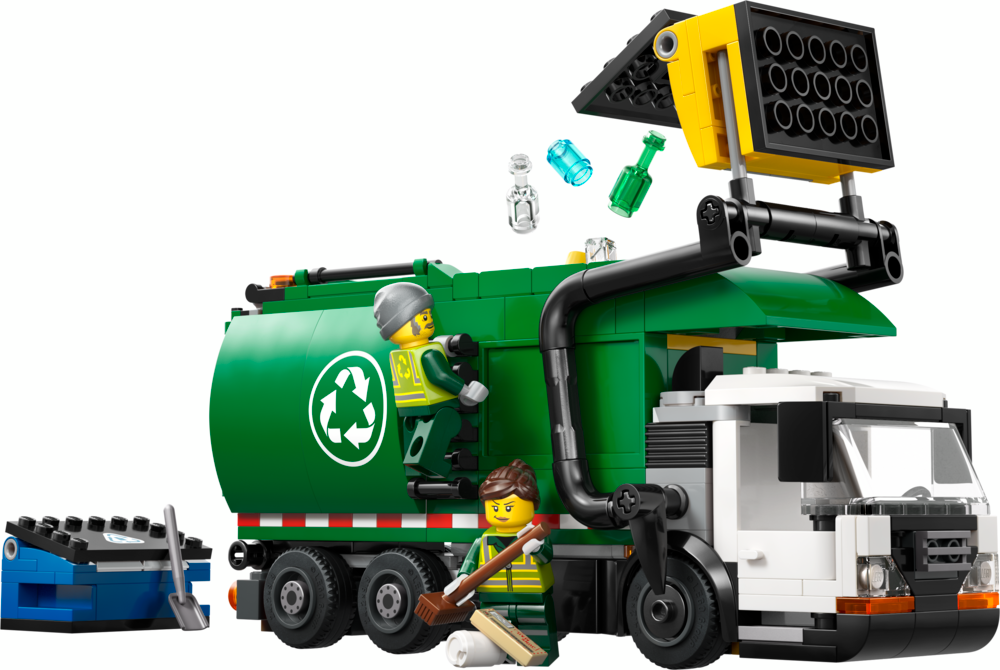 This LEGO City Recycling Truck toy building set (60495) is packed with realistic details for imaginative play. The toy truck has a divider to sort the LEGO glass and paper elements, plus storage clips for tools and a detailed driver's cab. Kids can tilt the cab to view the pretend electric motor, push a lever to lift and empty the 2 bins into the truck and raise the container to tip the sorted waste through either of the 2 rear hatches. Just add the driver and worker minifigures and let the adventures begin. This detailed kids' model truck kit makes a great gift for 7-year-old boys and girls who love hands-on interactive toys for creative play. Add it to other LEGO City sets (sold separately) for more adventures. With this LEGO Recycling Truck playset, kids can enjoy intuitive building with the LEGO Builder app, zooming and rotating with 3D instructions while saving and tracking progress as they build - all from the app.