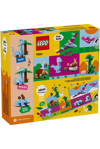 LEGO Classic Creative Dinosaurs 11041 is a cool dino toy set for 5 plus year old boys and girls, featuring brick-built dinosaur figures in blue, green, purple and brown. This endlessly versatile building toy set helps develop kids' creative construction skills. The quick-to-build LEGO dinosaur toys include a T. rex, triceratops toy, pterosaur, brontosaurus and a baby T. rex in an egg, and the set comes with a volcano, palm tree and accessories to inspire kids' pretend play. As well as colourful, assorted LEGO bricks, the creative toy also features special elements, including LEGO eyes and mouth pieces to add expression to the dino's faces. The creative fun continues as kids mix the bricks to modify their creatures. As they become more confident in their building skills, kids can follow the intuitive building guide to create imaginative dino toys of their own. LEGO Classic building toys open up a universe of endless possibilities, perfect for kids who love to build and create their own masterpieces. This dinosaur-themed set is great for imaginative play and makes a fun birthday gift for 5 plus year old boys and girls.