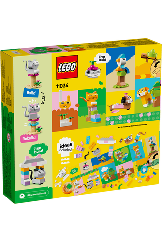 Animal-lovers can indulge their passion for pets with this creative animal building set. LEGO Classic Creative Pets 11034 is an inspirational mix of animal building bricks with simple guides to a colourful range of quick-to-build animal toys. It's a great way to encourage kids' creative construction. With 450 LEGO building bricks, including special pieces with eyes and mouths, and simple step-by-step instructions, kids can build a dog with a bowl and bone, a cat on a stand, a hamster with an apple, a rabbit with a carrot and a bird on a perch. Then, using suggestions included for alternative colours, shapes and functions, kids can rebuild their pets in a fun, new way. As their creative construction skills develop, kids can try out their own ideas. A guide featuring 10 ideas is included to kick-start the free-building fun. LEGO Classic toys are filled with ideas and inspiration and let parents share building fun and developmental milestones with their kids.