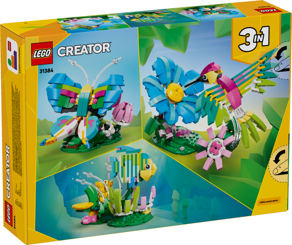 Animal-loving girls and boys aged 8 and over can play out charming stories with this LEGO Creator 3 in 1 Wild Animals: Colourful Hummingbird (31384) building toy. This impressive animal figures set offers kids 3 different building options with the same set of bricks. They can choose to build a posable hummingbird in a dynamic flying pose on a stand with beautiful flowers. They can then rebuild it into a butterfly on a stand with flowers, or a tropical fish on a stand with underwater plants. Once the building and playtime fun is over, each animal toy can be proudly displayed as a beautiful piece of nature decor. This LEGO Creator 3 in 1 set will inspire young imaginations and makes a great gift idea for kids who love nature and gorgeous animals. Kids can build each playset with confidence using the LEGO Builder app - zoom, rotate in 3D and track progress with easy-to-follow digital instructions. Please note models cannot be built simultaneously.