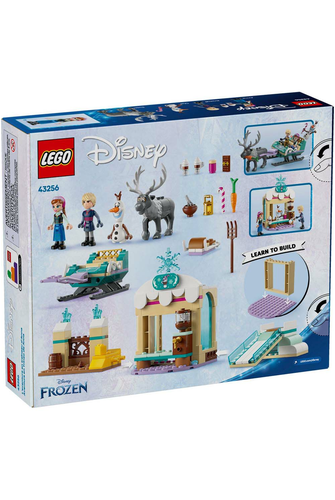 Winter fun awaits Disney's Frozen fans as they learn to build with this LEGO Disney Frozen Anna's Sleigh Adventure 43256 building toy set for 4+ year old girls and boys. This LEGO 4+ set features a hot chocolate stand, stable, sleigh, small sledge, sledging hill and other buildable items. It also includes 4 characters: Anna and Kristoff LEGO Disney mini-doll figures, an Olaf LEGO Disney snowman figure and a Sven LEGO Disney animal figure. 2 Starter Brick elements help give kids a sturdy start, and each bag of LEGO bricks has a Disney character so play starts fast. Along with simple pictorial instructions for kids just learning to read, there is an easy, intuitive building adventure on the LEGO Builder app. Kids can zoom in, rotate models in 3D and more. Fulfil a child's passion for Disney's Frozen with a princess building toy that makes a fun birthday gift for 4 plus year old girls and boys. Plus, it works with other LEGO Disney sets (sold separately).