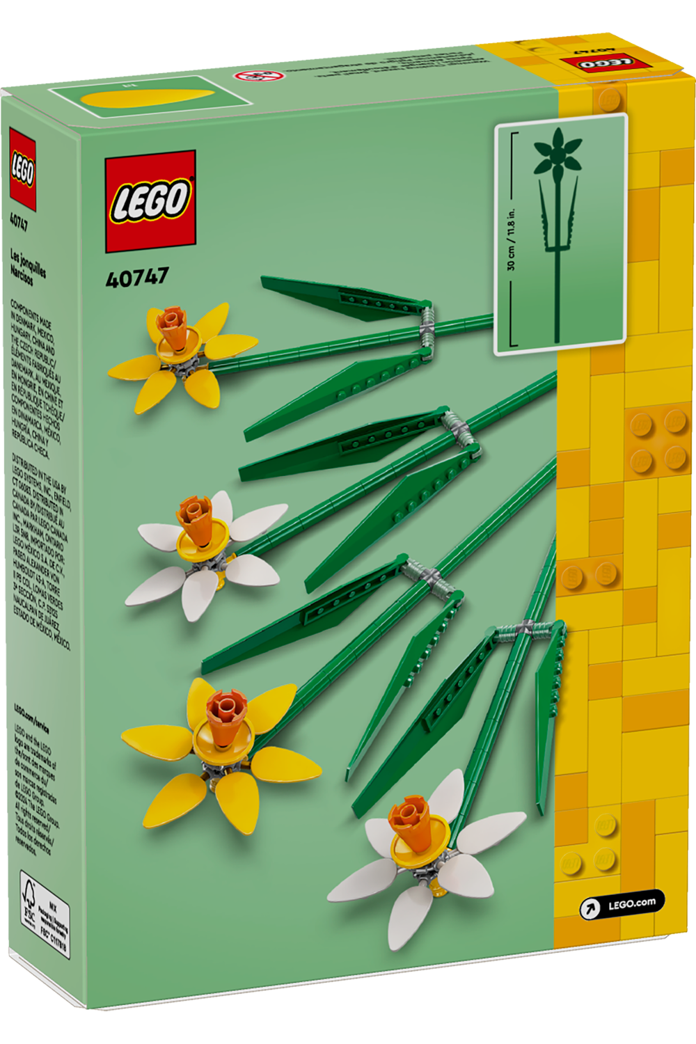 Give flowers that will last forever with this LEGO Daffodils 40747 celebration gift. Featuring 4 pastel-coloured blooms, this set for kids, boys and girls, as well as adult flower fans. The buildable posy includes 2 yellow daffodils and 2 white daffodils, each with green stems and adjustable leaves to encourage customization. Once complete, they can be displayed on their own or combined with other LEGO flowers (sold separately) to create a larger, more colourful bouquet.