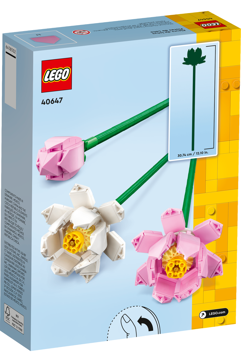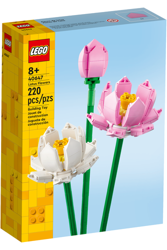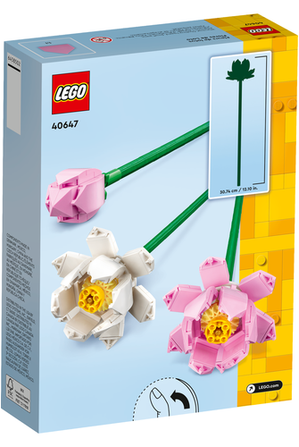 Recreate a wonder of nature with the LEGO Lotus Flowers 40647 building set. This LEGO interpretation of the globally celebrated flower depicts 2 Lotus in full bloom, plus a flower head in bud, all in delicate shades of pink and white, with long green stems for vase display. This beautiful LEGO bouquet makes a great birthday, holiday or any-day gift idea and can be combined with other buildable LEGO flower sets (sold separately).