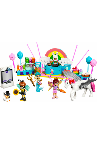 Here's a kids' building kit packed with storytelling inspiration. The LEGO Friends Costume Party with Unicorn & Fairy (42661) set for girls and boys aged 6 and up comes with 4 LEGO Friends minidolls, a cat figure and a horse figure. It also features lots of cute party accessories for pretend play. Kids can create their own fun stories and act out social situations as the friends try on their costumes. Autumn is dressing as a bumblebee and Olly is a merman. Churro the cat joins in the fun in a magician costume with Leo as his white bunny. Paisley wears a fairy costume and Periwinkle the horse transforms into a unicorn. The friends enjoy a party with a stage, DJ booth and snacks. There's also a photo booth with fun accessories where the friends can pose for pictures. Discover more friendship toys and gifts (sold separately) in the LEGO Friends universe. This set comes with the LEGO Builder app for intuitive building. Here kids can zoom in, rotate models and track progress as they build.