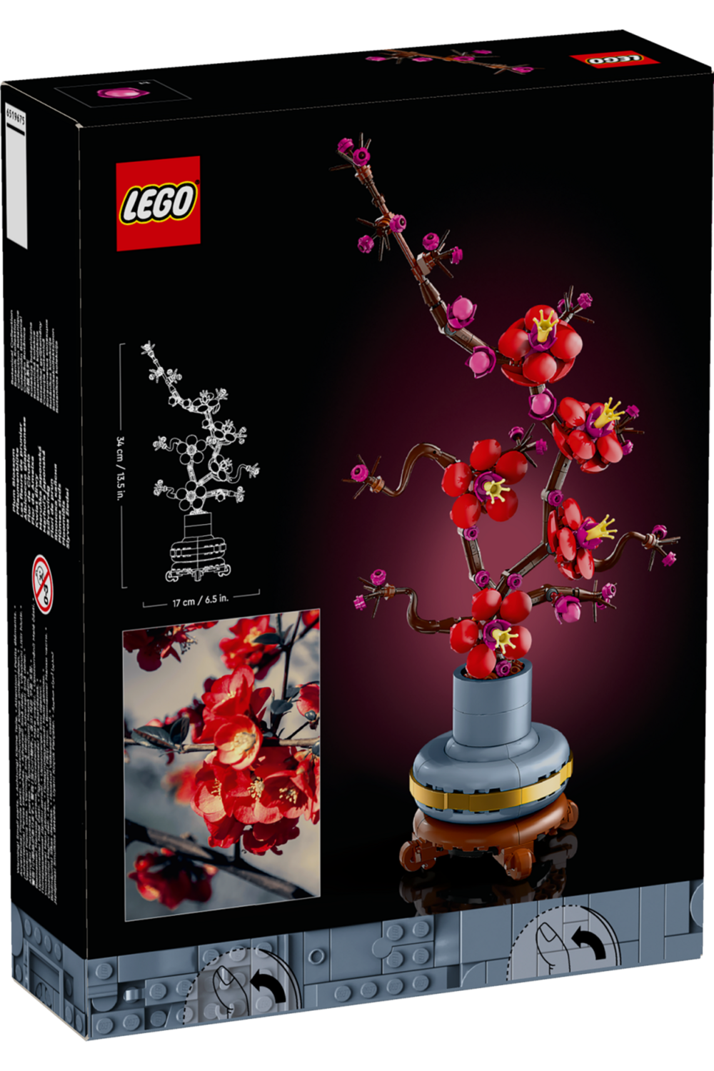 Take time out with the LEGO Icons Plum Blossom 10369 flower decor building set for adults. The plum blossom is a popular motif in traditional art, often portrayed in ink-and-wash paintings as part of a classic quartet of beautiful plants known as the Four Gentlemen. Indulge in a mindful building project or treat a loved one to this timeless floral display - a perfect gift idea for any occasion. This detailed replica captures the elegance of the iconic winter flora with its woody stem and vivid red and magenta flowers. Set in a pastel-blue flowerpot with a golden band and wood-effect plinth, it is easy to assemble, delivers a rewarding building experience and makes a beautiful, easy-care flower display for the home and office. Discover a space for relaxation with buildable models from the LEGO Botanical Collection, part of the inspiring range of LEGO building sets designed for adults. A digital version of the building instructions is available in the LEGO Builder app.