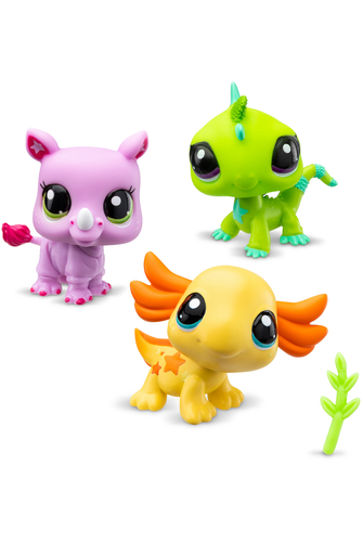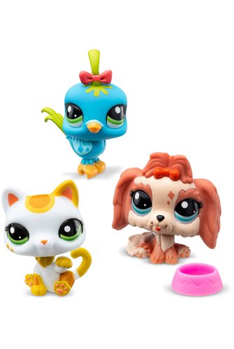 - Contents: 3 pets, 1 accessory, 1 collector card and 1 virtual code, 1 collector's guide