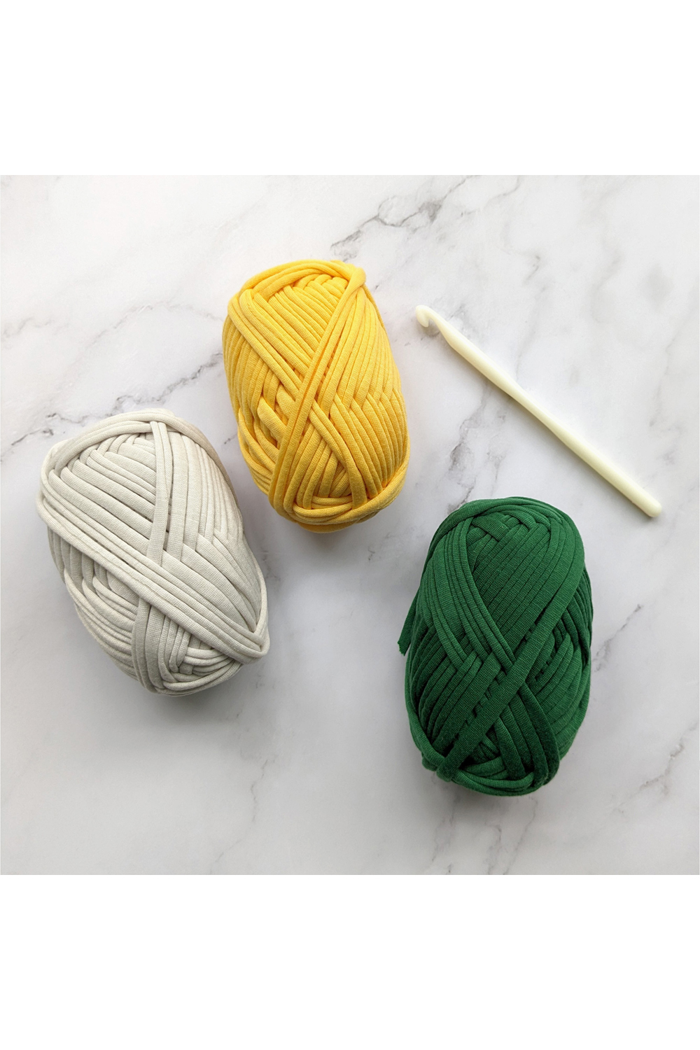 - Contents: khaki yarn, natural yarn, mustard yarn, 12mm crochet hook, instructions