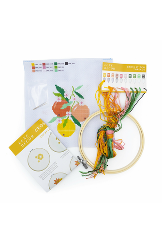This gorgeous craft kit contains everything you need to create two stunning cross-stitch tapestries. The box contains 10 skeins of coloured threads, 2 needles, 2 squares of aida fabric, a 15cm wooden embroidery hoop and full step-by-step instructions. Get creative and have fun making your own cross-stitch pieces. The kit has the template for a floral design and a fruit design. The clear and simple instructions for you to follow make it easy and fun. This luxe decor cross-stitch kit comes packaged in a gorgeous gift box, so it is ready for gifting. The kit makes a great gift for any crafting enthusiast. Encourage mindful screen-free time with this creative kit.- Packaging Dimensions: 27cm x 27cm x 5.2cm