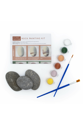This fun craft kit contains everything you need to create three hand-painted rocks. The box contains 3 rocks, 6 paints, a small paintbrush, and a large paintbrush. Get creative and have fun painting rocks. The kit comes with picture instructions for three design ideas. This luxe decor rock painting kit comes packaged in a gorgeous gift box, so it is ready for gifting. The kit makes a great gift for any crafting enthusiast. Encourage mindful screen-free time with this creative kit.