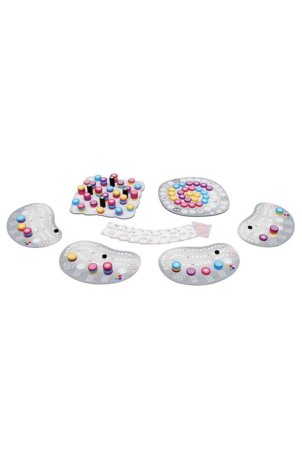 Welcome to Mandala Stones, a game of tranquillity and beauty! Arrange colourful stones to create a stunning work of art together with your friends. However, while there are many creators, there can be only one winner. Influence artists, positioning them cleverly on the main board, to form towers out of collected Stones, which you then display onto the mandala board at an opportune moment to score Victory Points. Mandala Stones is played over a number of rounds. Each round, beginning with the starting player and continuing clockwise until around the table, every player will take one turn. The game will conclude at the end of the round during which the end-game condition is triggered, thus giving all players an equal number of turns. The player with the most Victory Points is the winner. Game contains: 95 Mandala Stones, 4 Artists, 4 Player Boards, 4 Scoring Markers, 1 Main Board, 1 Mandala Board, 10 Objective Cards, 4 Reference Cards, 1 Draw Bag, 1 Rule Book.